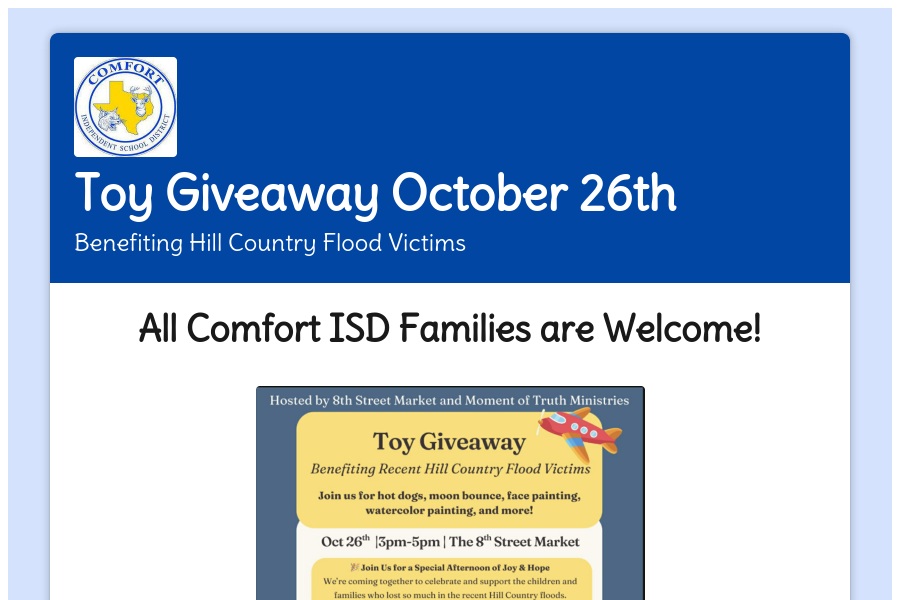 Toy Giveaway October 26th Benefiting Hill Country Flood Victims